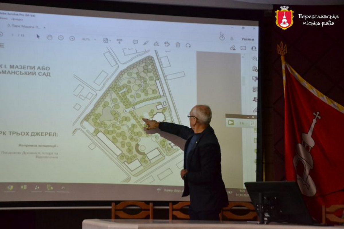 1 жовтня на позачерговому засіданні сесії міської ради Переяслава Вячеслав Саулко показав депутатам презентацію вигляду майбутнього парку Івана Мазепи та його озеленення, який планують облаштувати на території колишнього військового містечка.