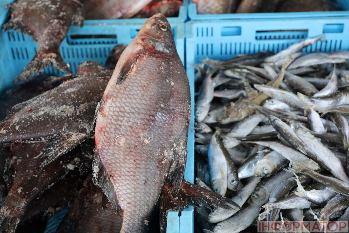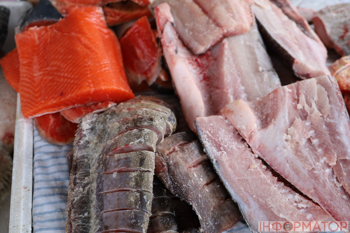 Риби на базарі цього тижня, як і раніше, було вдосталь. Асортимент поповнився червоною рибою – її продавали за 750–850 гривень за кілограм. Карасі коштували 110 грн за кілограм, коропи – 170–190 грн. Стейк сома продавали по 250–270 грн за кілограм, а філе сома – по 160 грн. Попит на рибу залишається доволі високим, адже людей, які хочуть щось придбати з рибної продукції завжди біля точок вдосталь. Ціни на решту риби були такими: