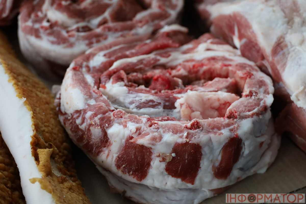 М’ясні прилавки на базарі традиційно заповнені як продукцією, так і покупцями. Найчастіше відвідувачі цікавляться антрекотом для шашлику, який продають за 250–280 гривень за кілограм, а також салом – його вартість коливається від 250 до 300 гривень. Стабільним попитом користується й курятина, яку реалізують по 160 гривень за кілограм. Загалом ціни на м’ясну продукцію залишаються майже без змін: