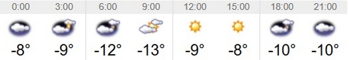 У вівторок, 17 лютого, у Переяславі буде переважно сонячно. Зранку та ввечері на небі можуть з’явитися хмари, без опадів. Мінімальна температура повітря буде вранці – 13 градусів морозу. Максимальна вночі та вдень – 8 градусів нижче нуля. Про це повідомляє Інформатор, посилаючись на sinoptіk.