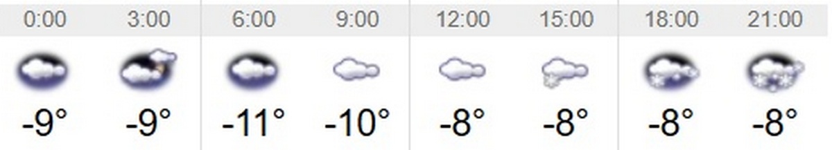 У середу, 18 лютого, у Переяславі буде хмарно. Після обіду очікується сніг, який посилиться до вечора. Опади – 9,9 мм. Мінімальна температура повітря буде вранці – 11 градусів морозу. Максимальна по обіді – 8 градусів нижче нуля. Про це повідомляє Інформатор, посилаючись на sinoptіk.