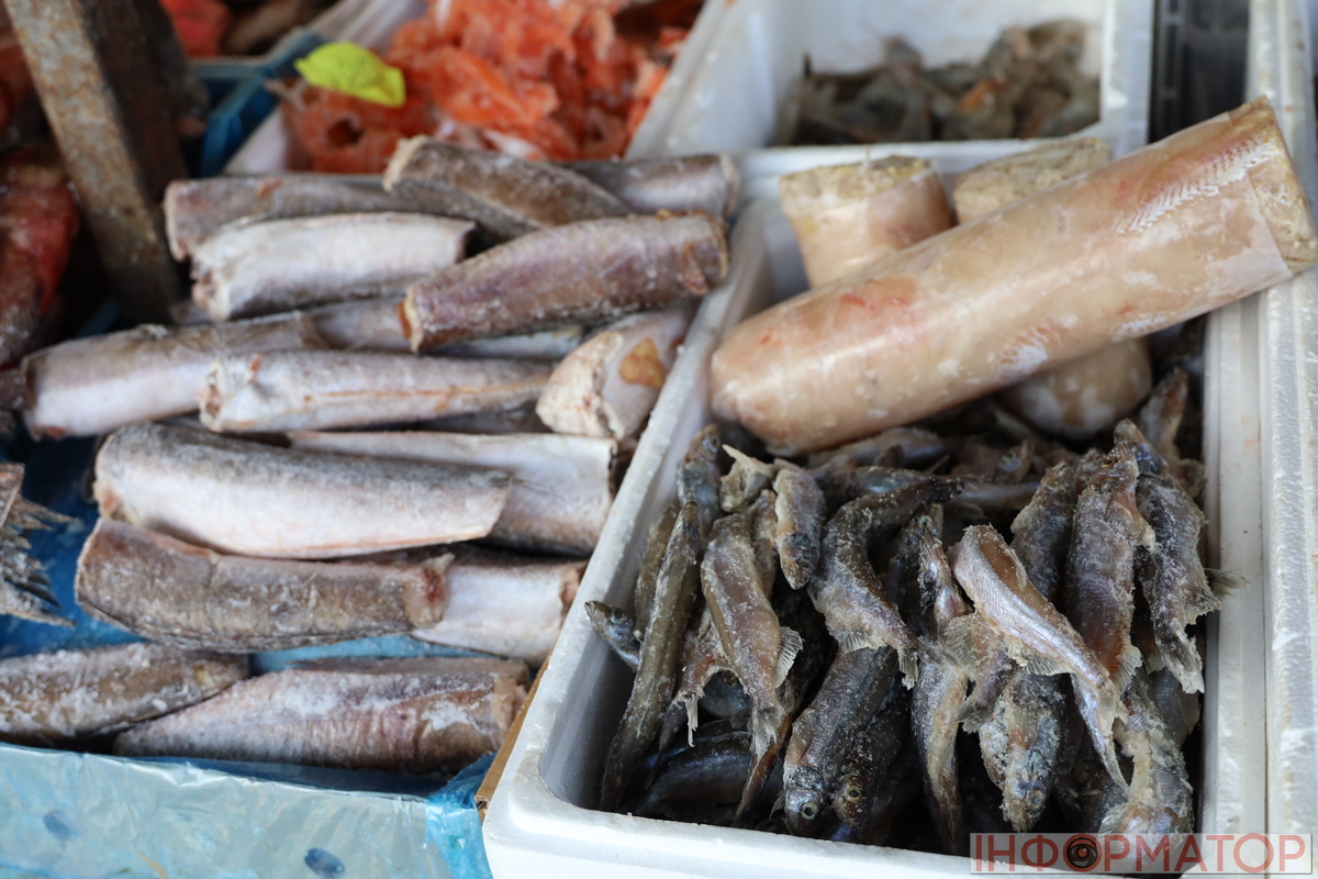У рибному відділі продавці прогнозують підвищення цін, хоча вибір продукції поки залишається доволі великим. Дехто з покупців підходив поцікавитися конкретними видами риби, однак не все було в наявності. Продавчиня пояснила, що за пів години мають підвезти нову партію – тоді можна буде придбати потрібний товар, а поки пропонувала обрати альтернативу. У відповідь чоловіки жартували, що дружина відправила їх саме за конкретною рибою – і жодна інша не підійде. Загалом же на базарі люди переважно обговорювали нічні польоти “шахедів” над Переяславом та незадовільний стан доріг через ожеледицю. Цього тижня рибу можна було придбати за такими цінами: