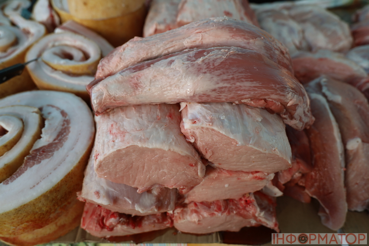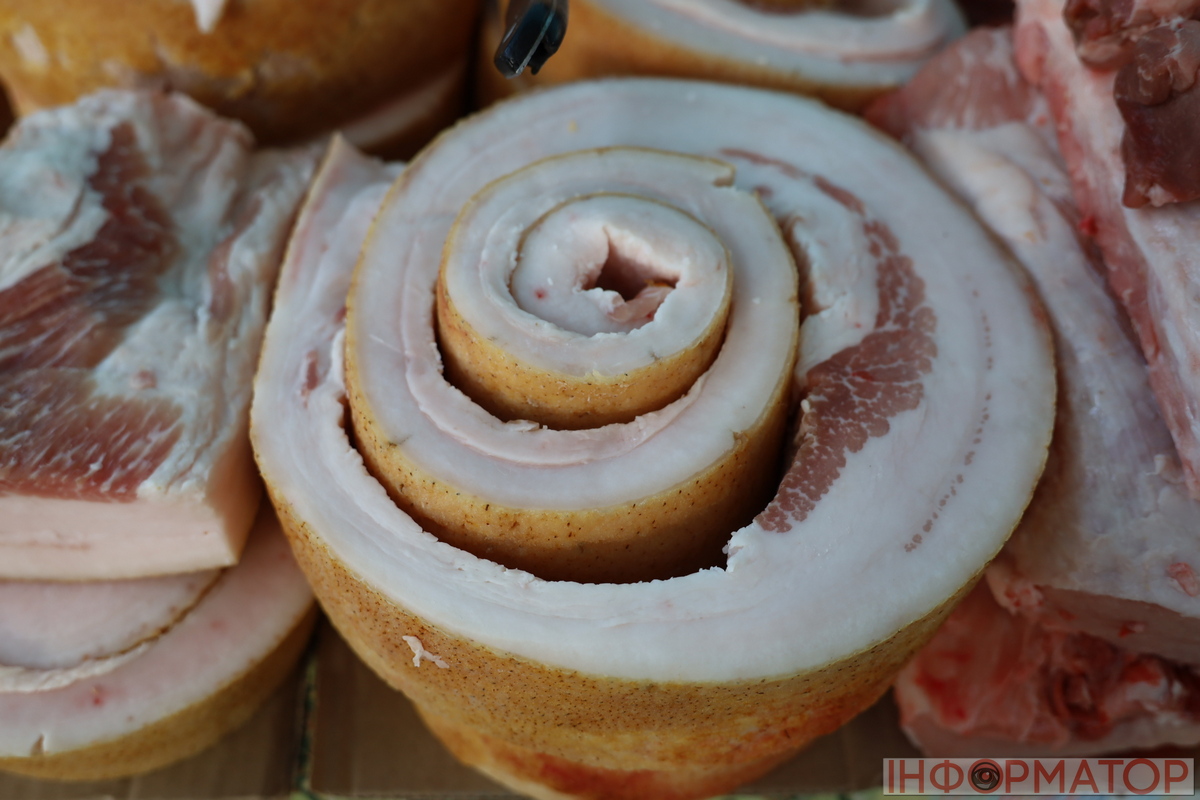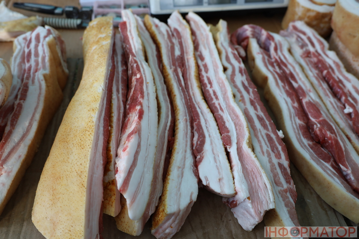 У м’ясному відділі продавці розповіли, що ціни наразі не змінюють. За їхніми словами, дехто змушений підвищувати вартість через здорожчання газу, однак у них усе поки залишається стабільним. Також зазначили, що станом на 08:30 торгівля була не надто активною – сподіваються, що покупців побільшає пізніше. Водночас жартують: як би їхню продукцію не “рекламували” у репортажах, купувати підходять переважно вже постійні клієнти. Ціни на м’ясну продукцію не змінилися і були такими: