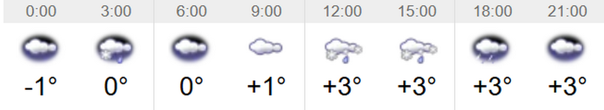 У понеділок, 23 лютого, у Переяславі буде хмарно. Після обіду очікується дощ зі снігом. Мінімальна температура повітря буде вночі – 1 градус морозу. Максимальна вдень та ввечері – 3 градуси вище нуля. Про це повідомляє Інформатор, посилаючись на sinoptіk.