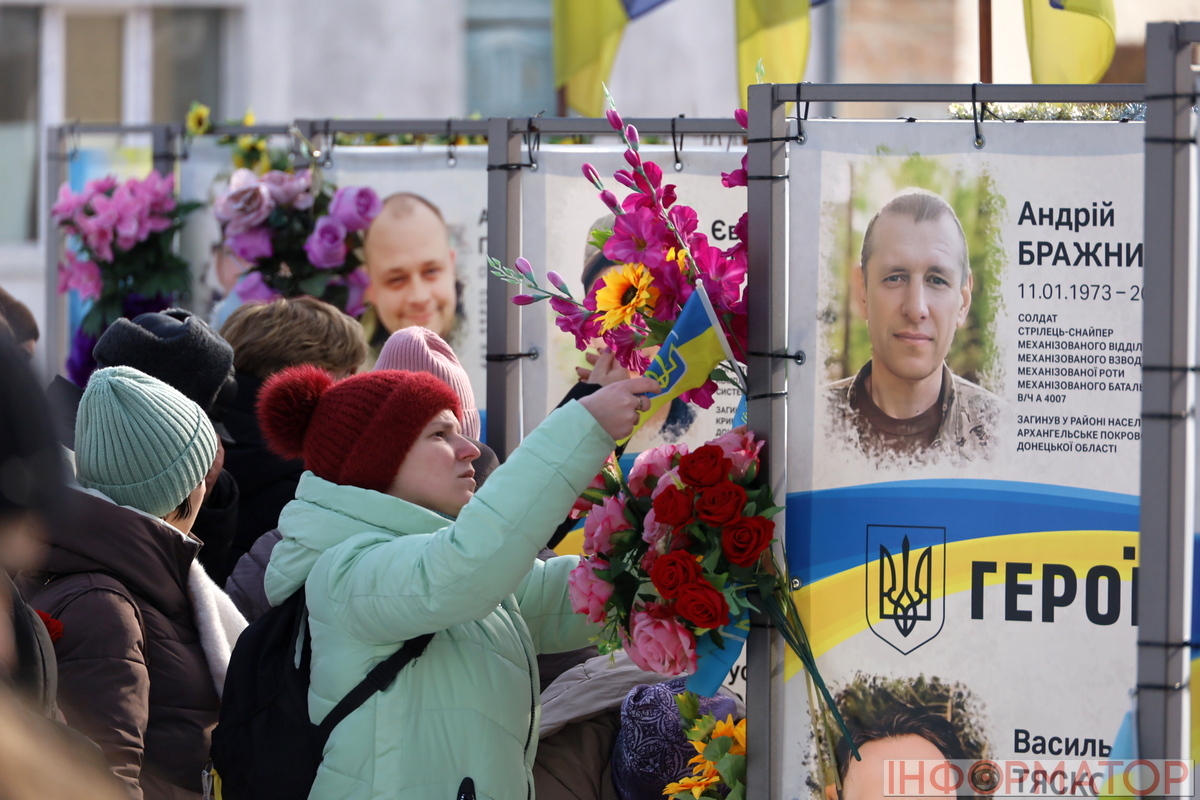 Він закликав пам’ятати кожного полеглого захисника та бути вдячними тим, хто зараз боронить Україну: “Допомагайте нашим волонтерам, підприємцям, всім тим, хто звертається до вас. Пам’ятайте всіх тих жінок, які ночами плетуть сітки в холоді, в морозі. Наш обов’язок – всім допомогти”.