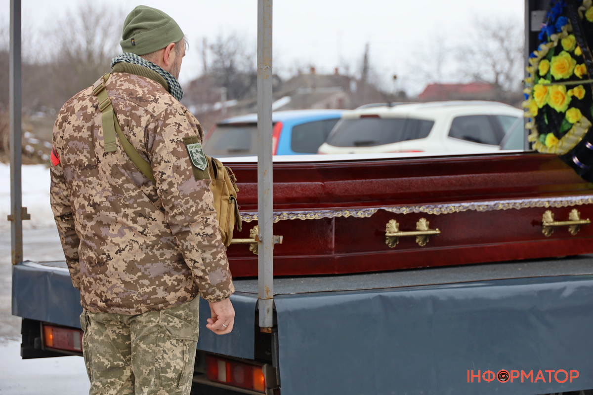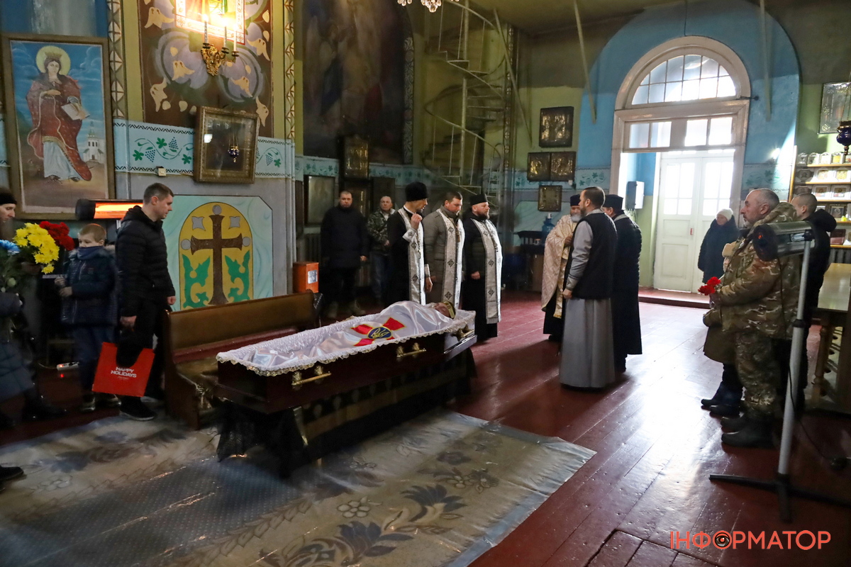 Після літургії захисника вшанували, стоячи на колінах. Потім під супровід сирен похоронний кортеж вирушив на кладовище до села Гребля.