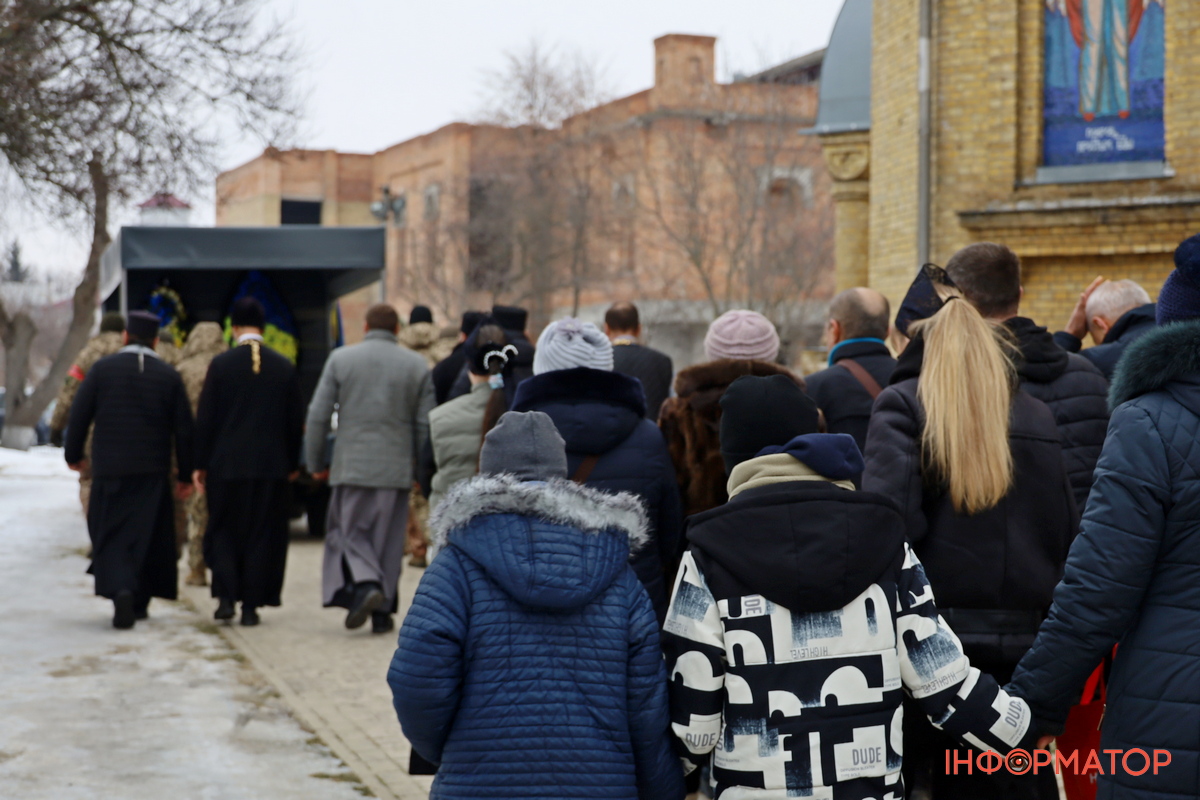 У Переяславі до Собору Успіння Пресвятої Богородиці прийшло кілька десятків людей, прощалися із захисником у колі близьких та рідних. У воїна залишилися дружина, двоє дітей, мама, брат.