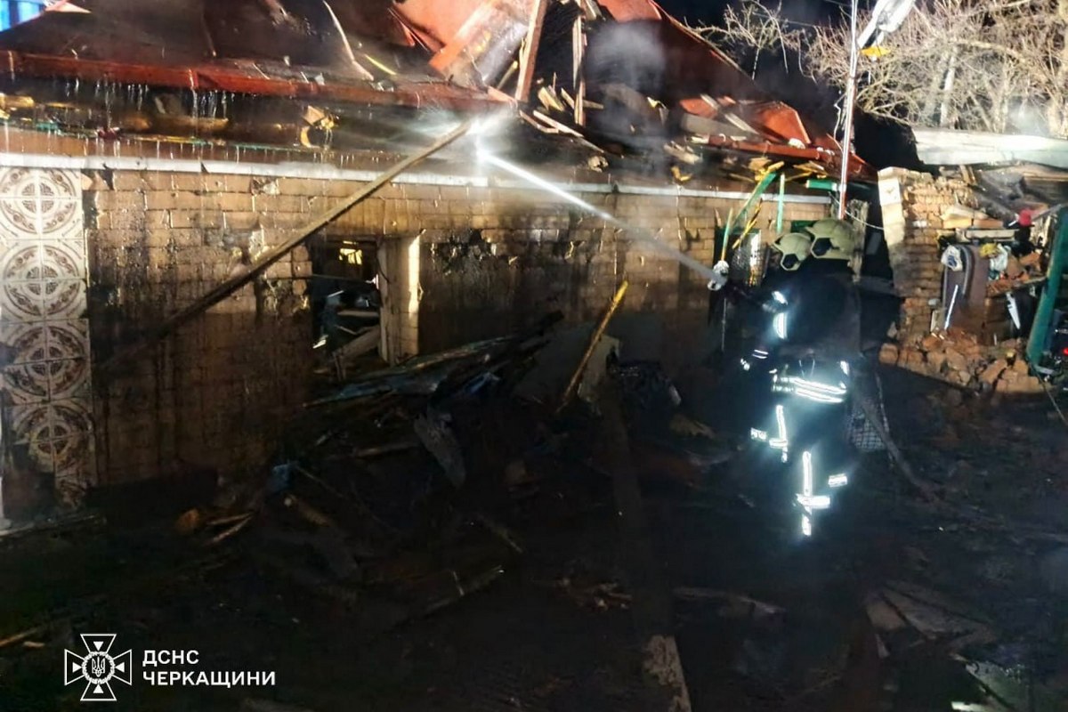 На Черкащині внаслідок нічної атаки БпЛА по області виникла пожежа житлового будинку. Рятувальники евакуювали 6 осіб, серед яких двоє дітей 2020 та 2021 років народження. На місці події зруйновано житловий будинок та господарчі будівлі. Пошкоджено автомобілі, вікна та двері двох інших житлових будинків.