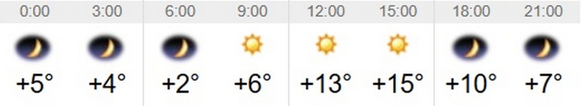 Швидкість вітру – 4-5 м/с. Вологість повітря коливатиметься між 28 та 69 відсотками протягом доби. Тривалість дня 11 березня – 11 годин 35 хвилин. Завтра день буде на 4 хвилини довшим, ніж сьогоднішній. Світанок настане о 6:17, а захід – о 17:52.