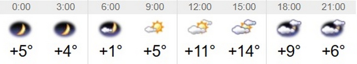 Швидкість вітру – 2-4 м/с. Вологість повітря коливатиметься між 35 та 82 відсотками протягом доби. Тривалість дня 12 березня – 11 годин 38 хвилин. Завтра день буде на 3 хвилини довшим, ніж сьогоднішній. Світанок настане о 6:15, а захід – о 17:53.