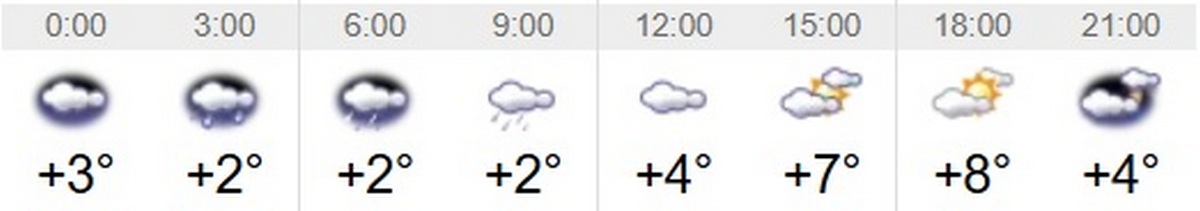 Швидкість вітру – 4-5 м/с. Вологість повітря коливатиметься між 55 та 95 відсотками протягом доби. Тривалість дня 9 квітня – 13 годин 24 хвилини. Завтра день буде на 4 хвилини довшим, ніж сьогоднішній. Світанок настане о 6:14, а захід – о 19:38.