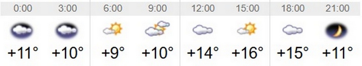 Швидкість вітру – 2-3 м/с. Вологість повітря коливатиметься між 42 та 97 відсотками протягом доби. Тривалість дня 17 квітня – 13 годин 53 хвилини. Завтра день буде на 3 хвилини довшим, ніж сьогоднішній. Світанок настане о 5:57, а захід – о 19:50.