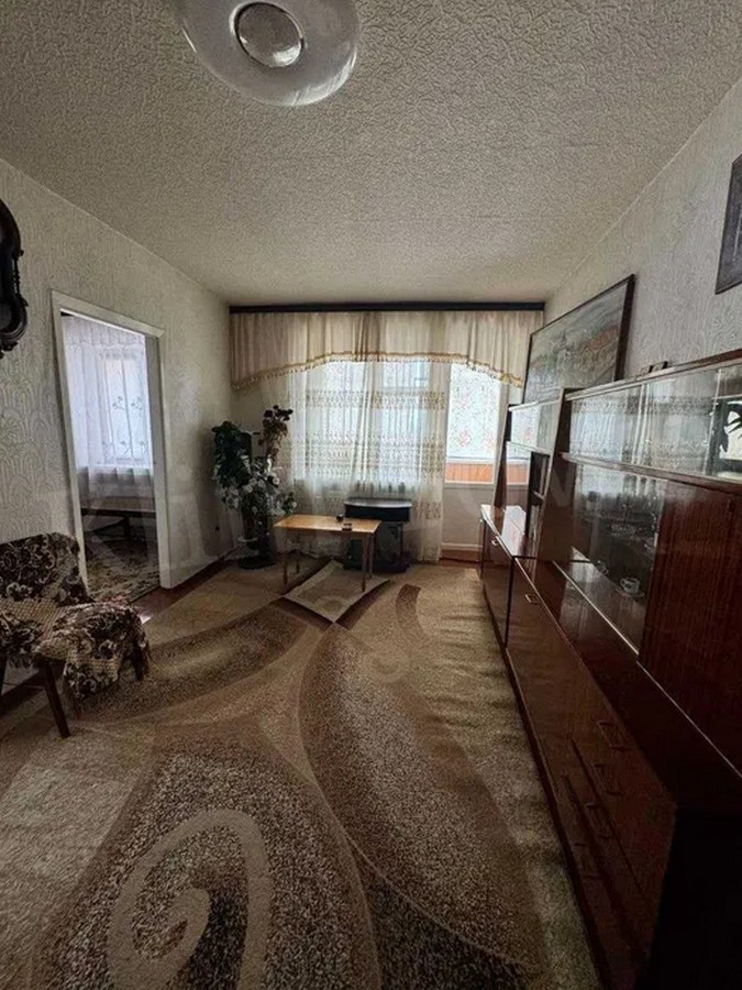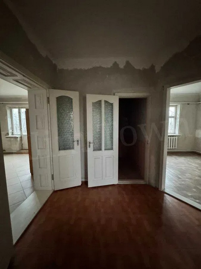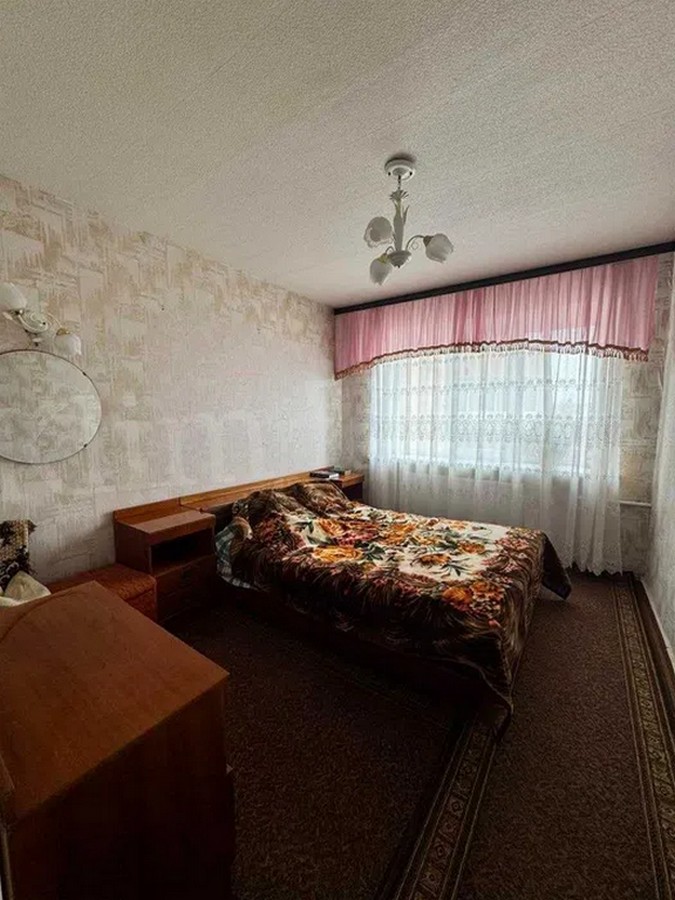 Квартира розташована на четвертому поверсі п’ятиповерхового будинку. Загальна площа – 60,4 кв. метра. У квартирі чотири кімнати (три – ізольовані, одна – прохідна), просторий коридор, кухня, роздільний санвузол. Стан – житловий. Є вихід на балкон з якого відкривається красивий вид на місто.