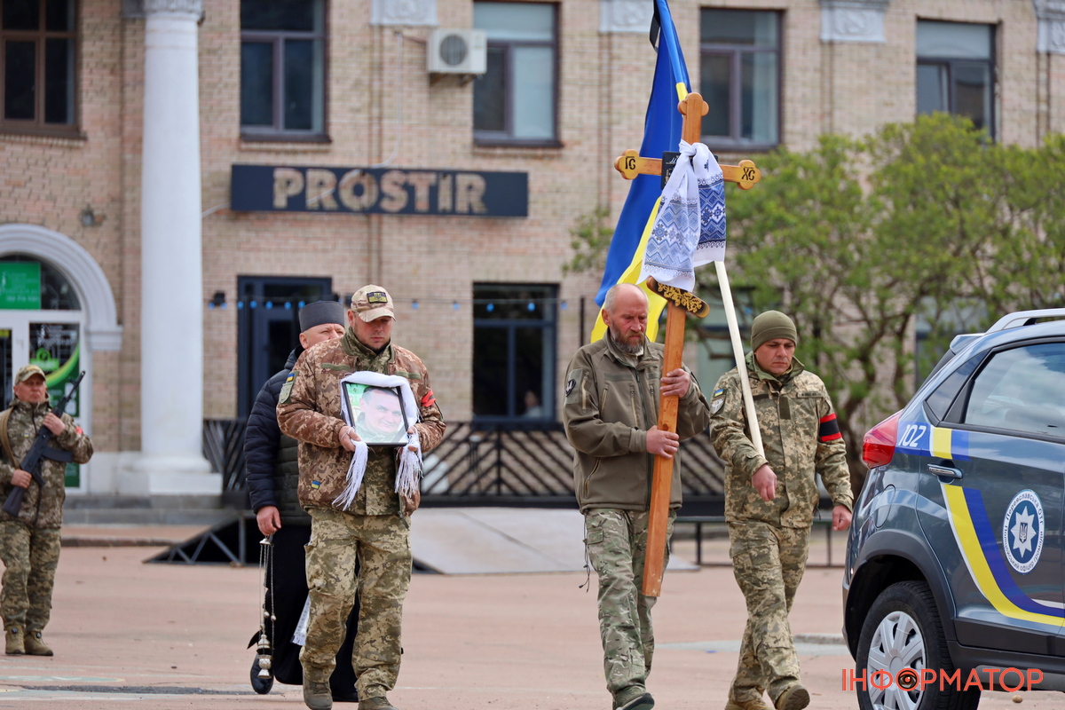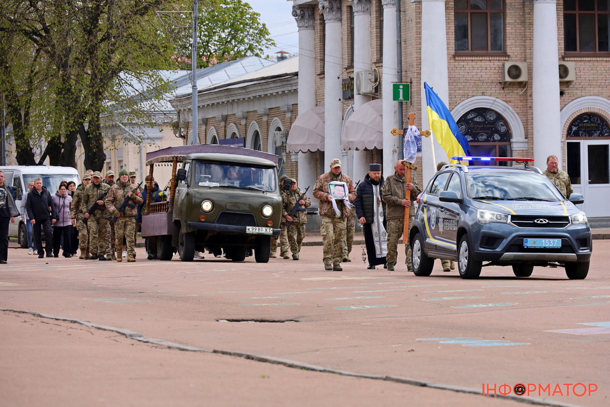 Після богослужіння траурна процесія рушила центральною площею міста на Ярмаркове кладовище. Прапори були опущені, а перехожі проводжали воїна в останню путь стоячи на колінах. Переяслав у скорботі попрощався із ще з одним захисником, який віддав життя за свободу та незалежність нашої України.
