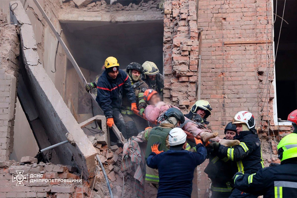 За повідомленням Президента України Володимира Зеленського зараз в лікарнях у Дніпрі перебувають 11 людей після російської атаки проти міста. Триває рятувальна операція на місці удару по житловому будинку. Під завалами ще можуть бути люди. Практично всю ніч росіяни били по Дніпру та по інших наших містах і громадах.