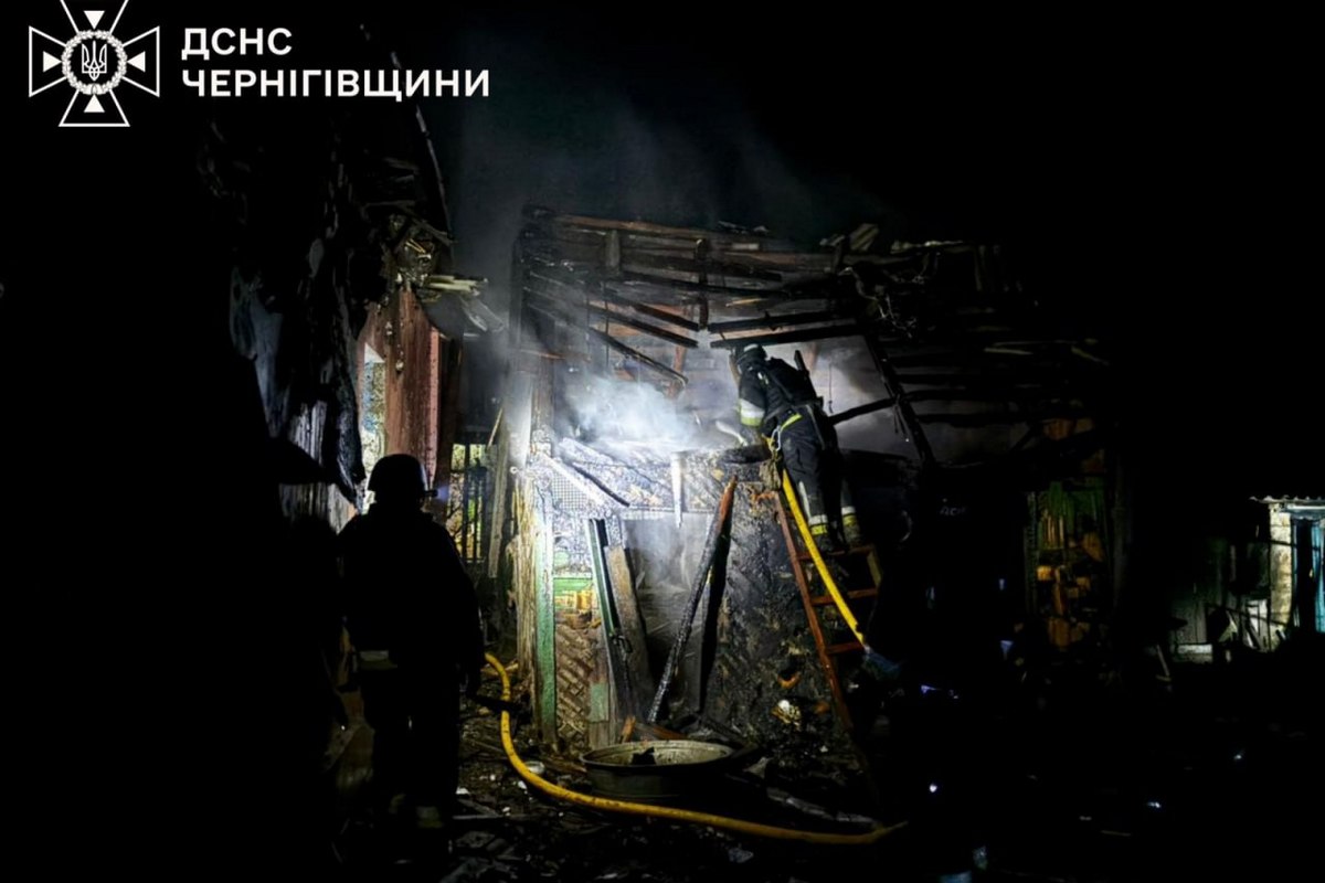 У Сновській громаді через російські удари горіли житлові будинки, господарчі споруди та автівки, усі загоряння ліквідували.