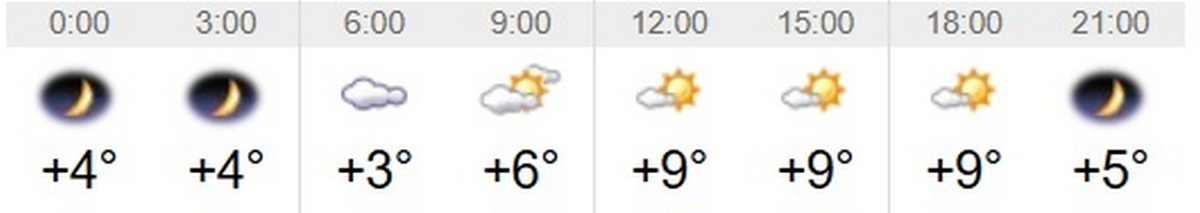 У вівторок, 28 квітня, у Переяславі буде переважно сонячно. Опадів синоптики не прогнозують. Мінімальна температура повітря буде вранці – 3 градуси тепла. Максимальна вдень – 9 градусів вище нуля. Про це повідомляє Інформатор, посилаючись на sinoptіk.