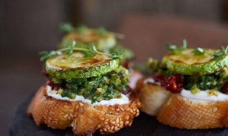 Літо – сезон свіжих овочів і пікніків на природі. Приготуйте брускету з кабачком на грилі під освіжаючим м’ятним соусом. Брускета – це...